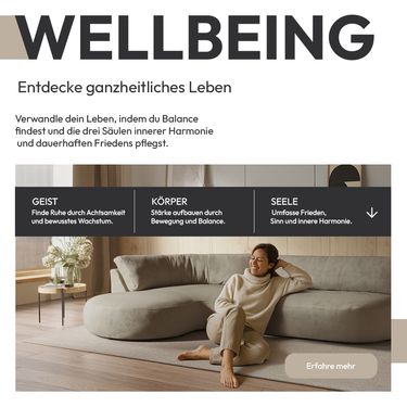 Bei SLF24 sehen wir – in enger Zusammenarbeit mit der Wellness-Philosophie von NadaUp – Möbel nicht als passive Objekte. Für uns sind sie Partner der Regeneration – feine Instrumente, die die Einheit von Körper, Geist und Seele fördern. Denn wenn diese drei in Einklang sind, fühlt sich das Leben voller, gesünder und ausgewogener an. In diesem Artikel möchte ich die Bedeutung dieser Einheit vertiefen – zeigen, wie Komfort, Physiologie und Psychologie ineinandergreifen – und verdeutlichen, warum unsere Sofas und Sessel aus medizinischem Schaumstoff nicht nur angenehm zu sitzen sind, sondern potenzielle Game-Changer für Ihre langfristige Gesundheit.